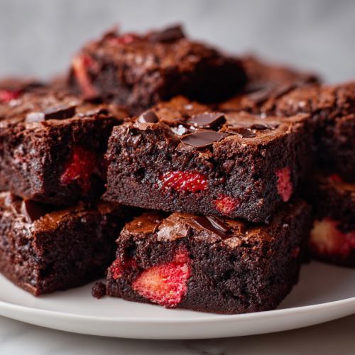 These chocolate strawberry brownies are rich, fudgy, and packed with deep chocolate flavor and bursts of fresh strawberries. They come together quickly with simple ingredients, making them perfect for a quick dessert or weekend treat.